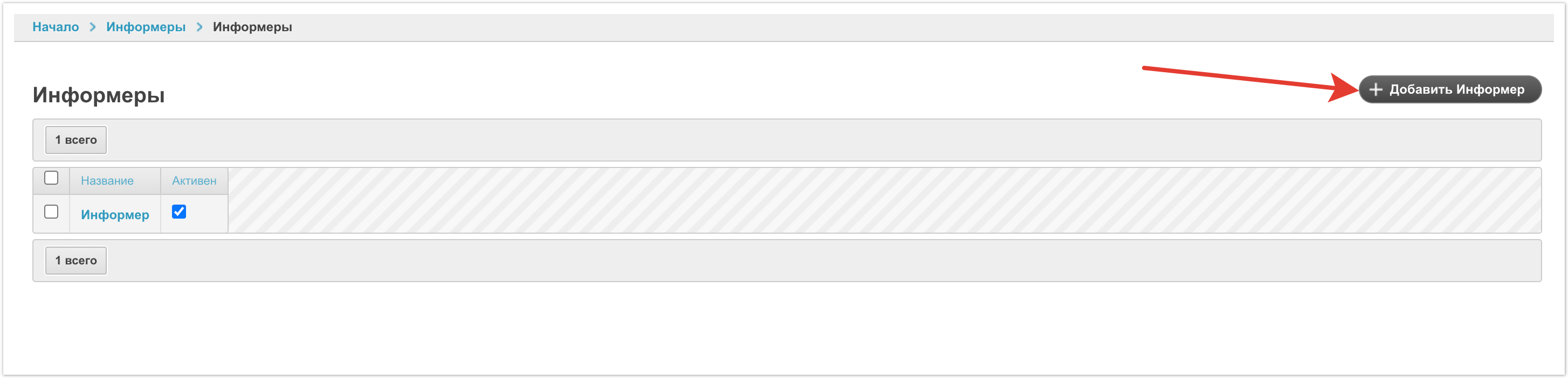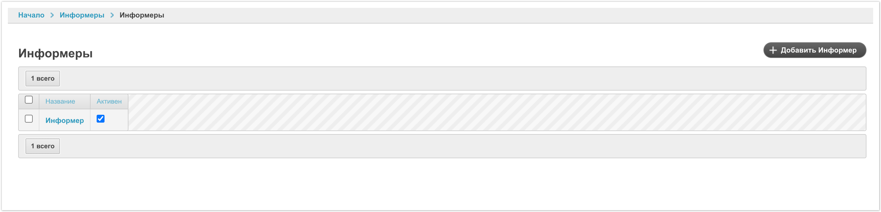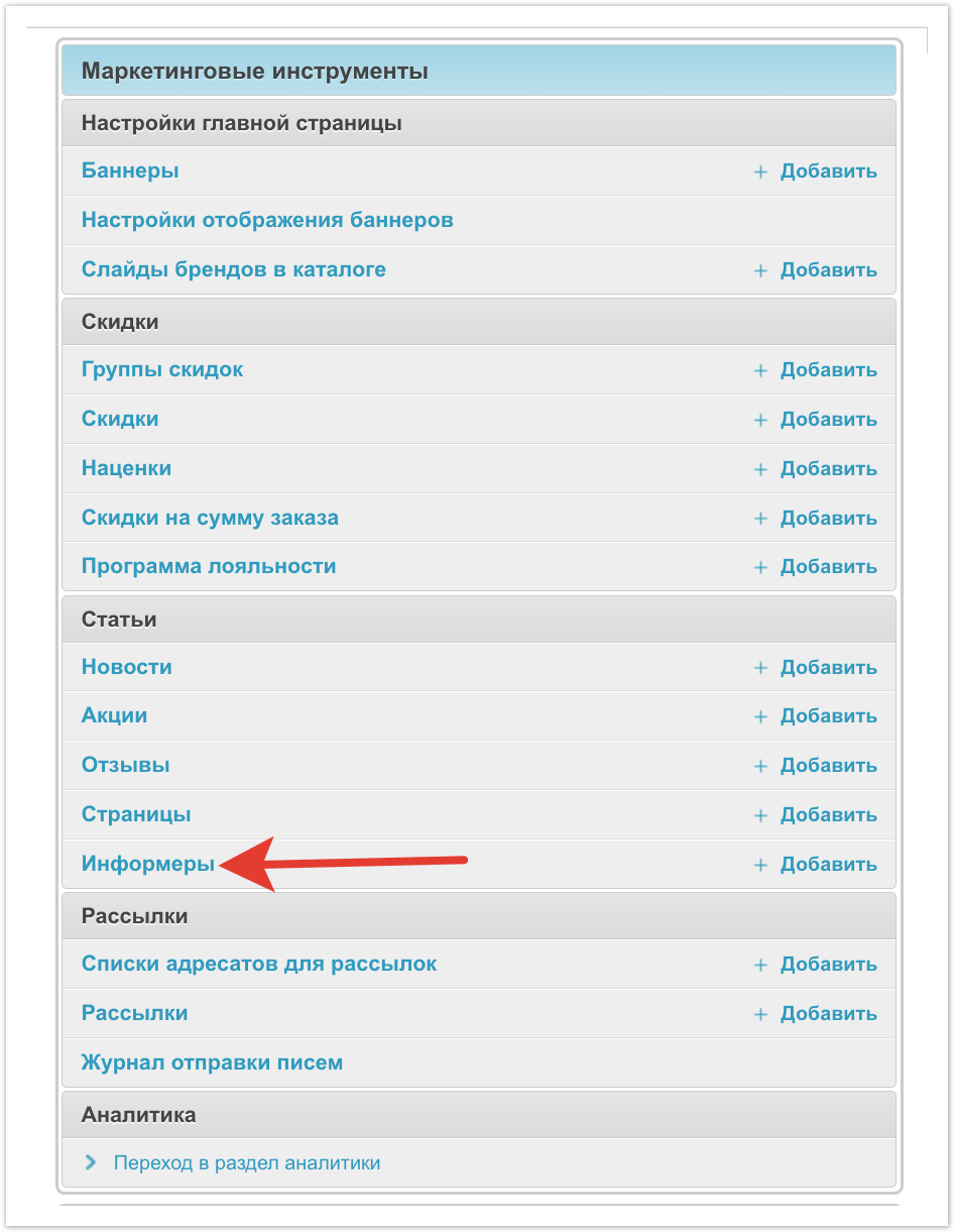После перехода в раздел можно увидеть список настроенных по умолчанию информеров.