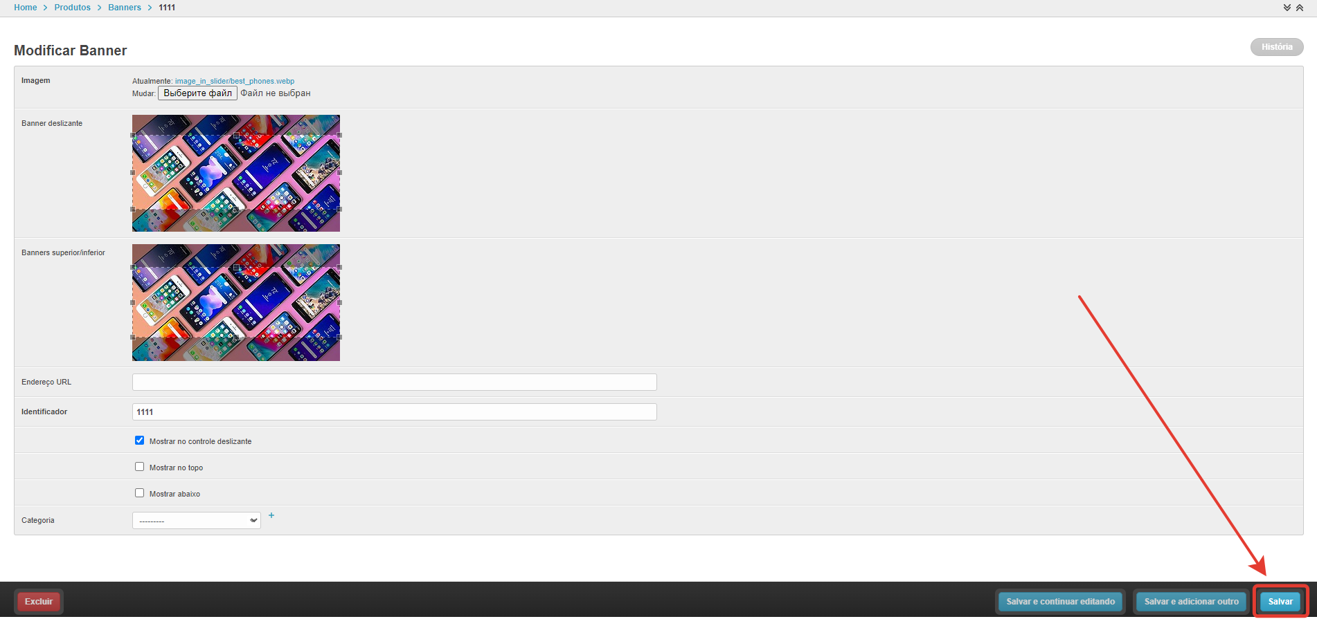 Показывать в слайдере — баннер будет отображаться в слайдере.