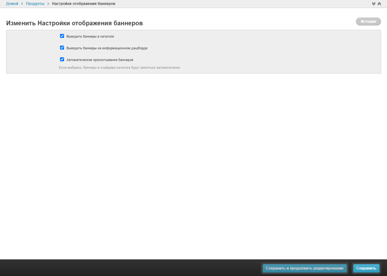 Выводить баннеры в каталогах — чекбокс включает/отключает баннеры во всех каталогах.