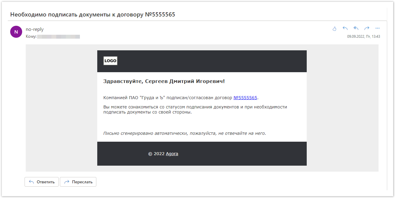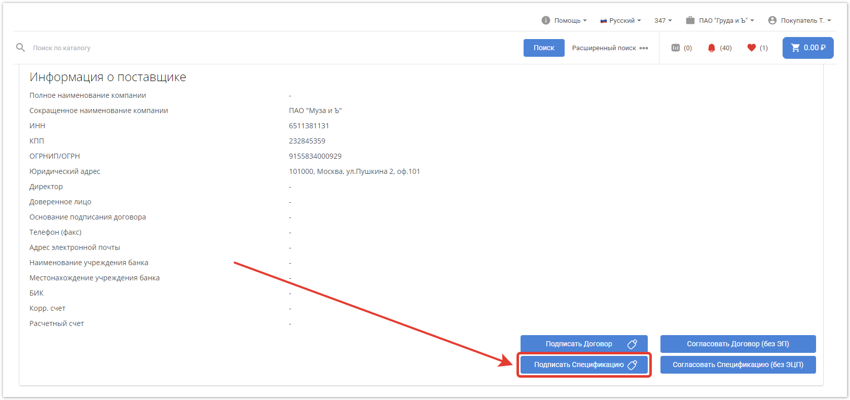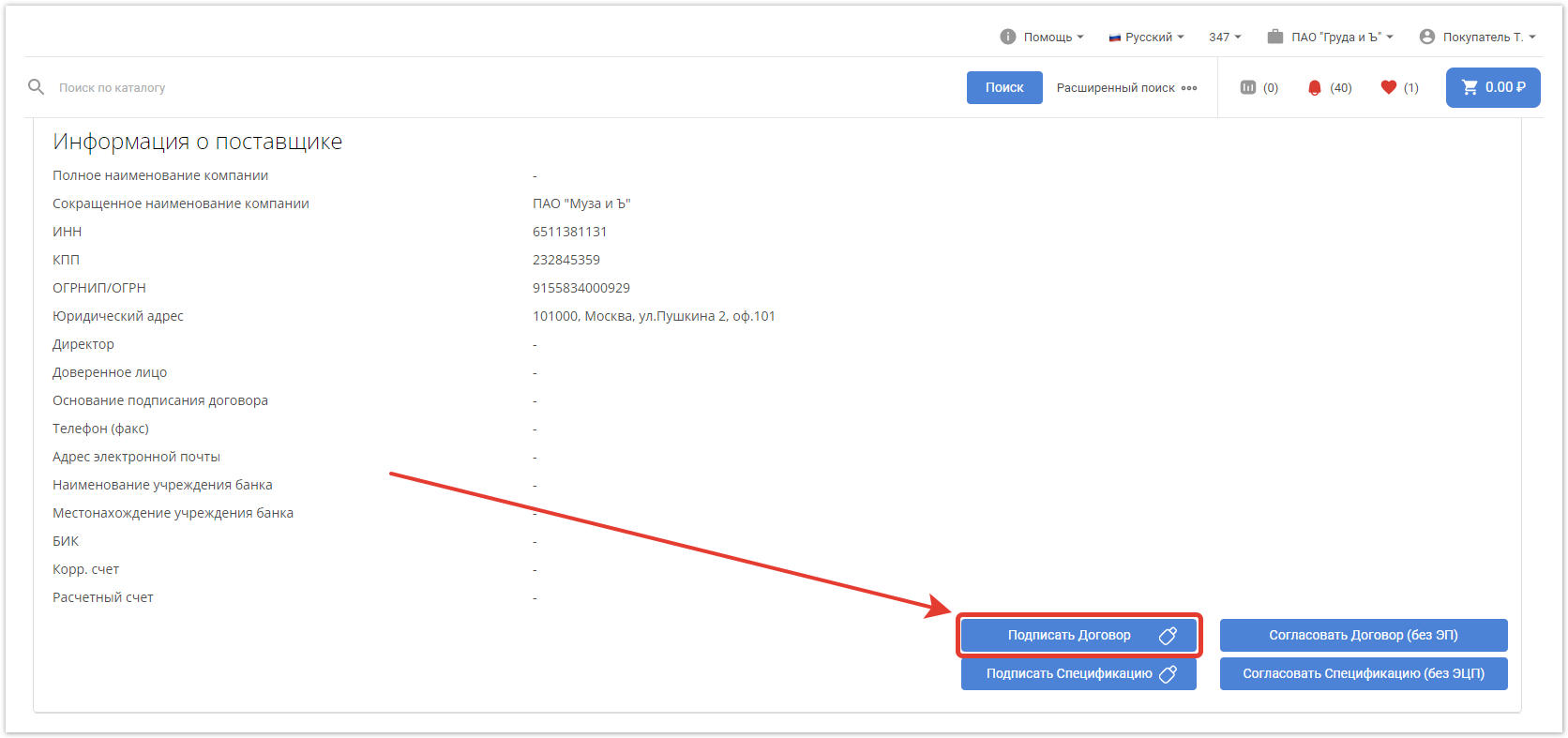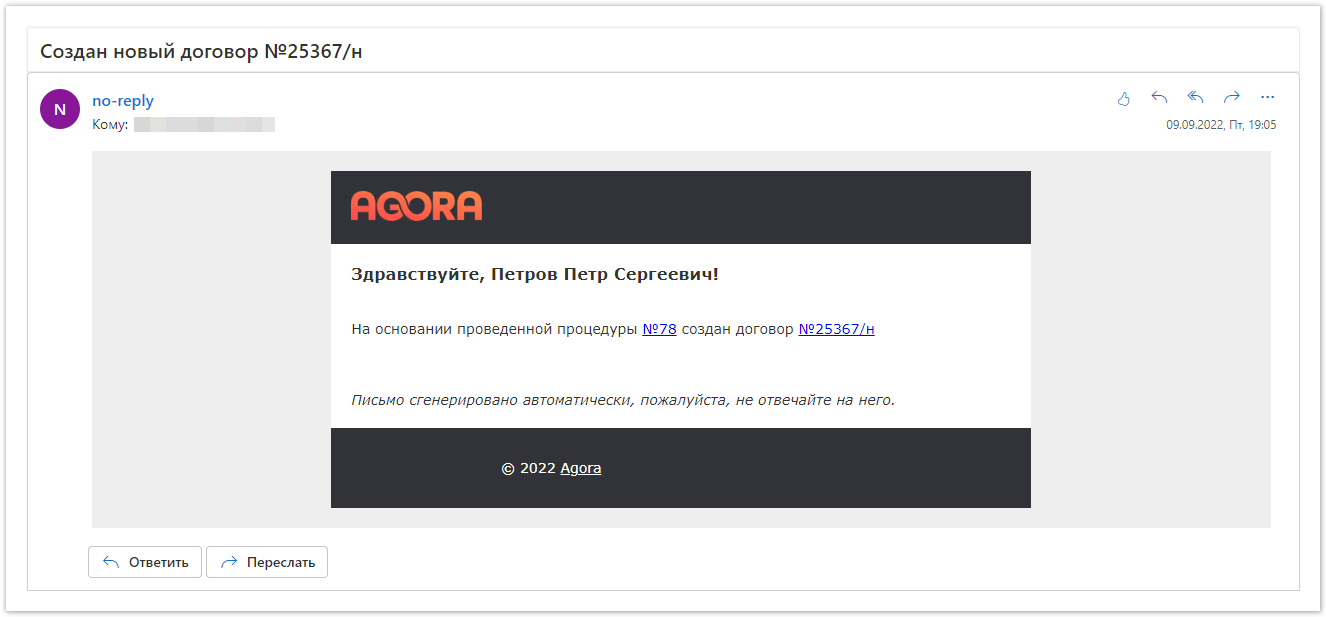Поставщик получит уведомление на электронную почту и в личный кабинет о том, что был создан договор.