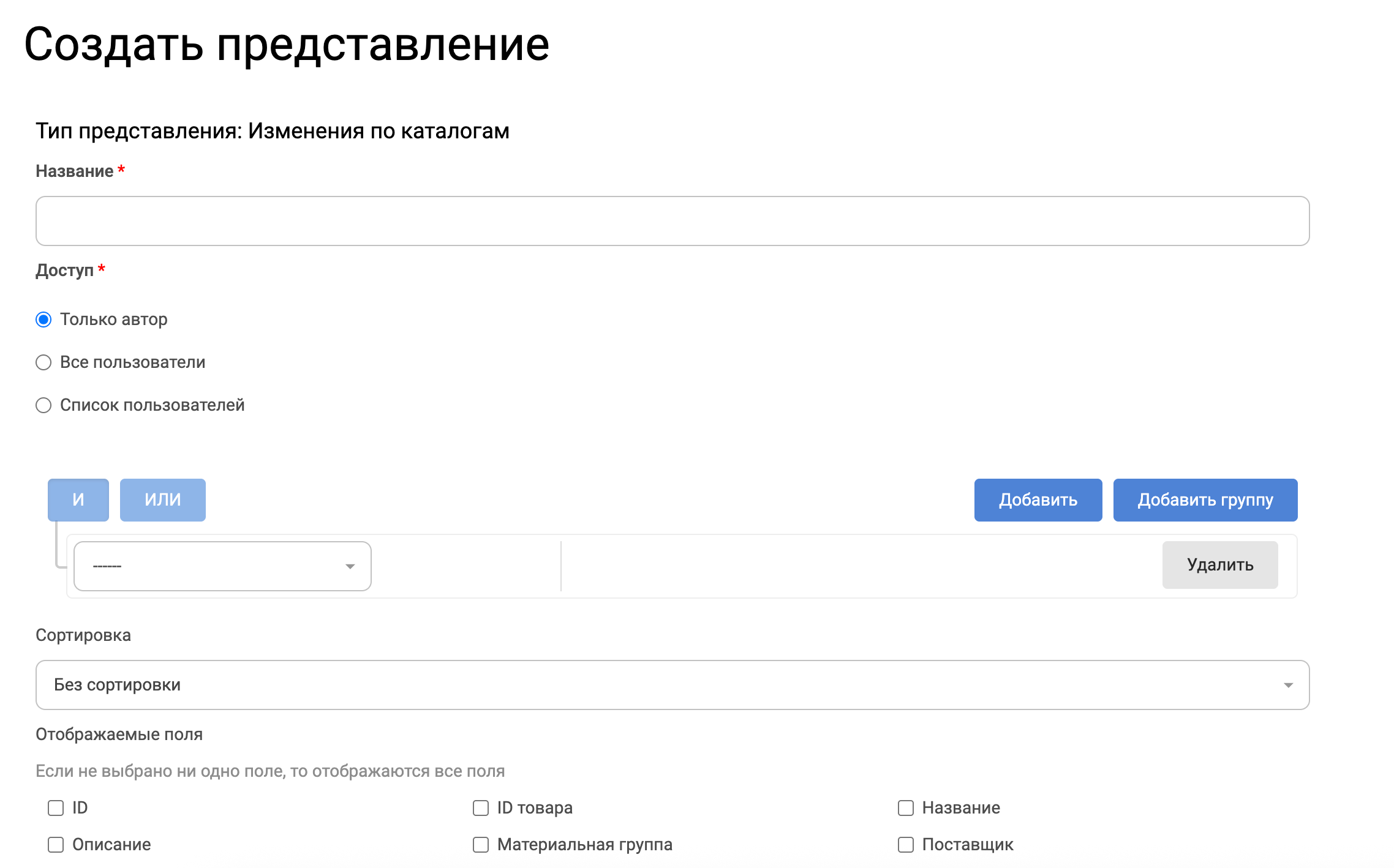 Чтобы создать представление, необходимо нажать на кнопку Новое представление и заполнить все необходимые поля для поискового запроса: