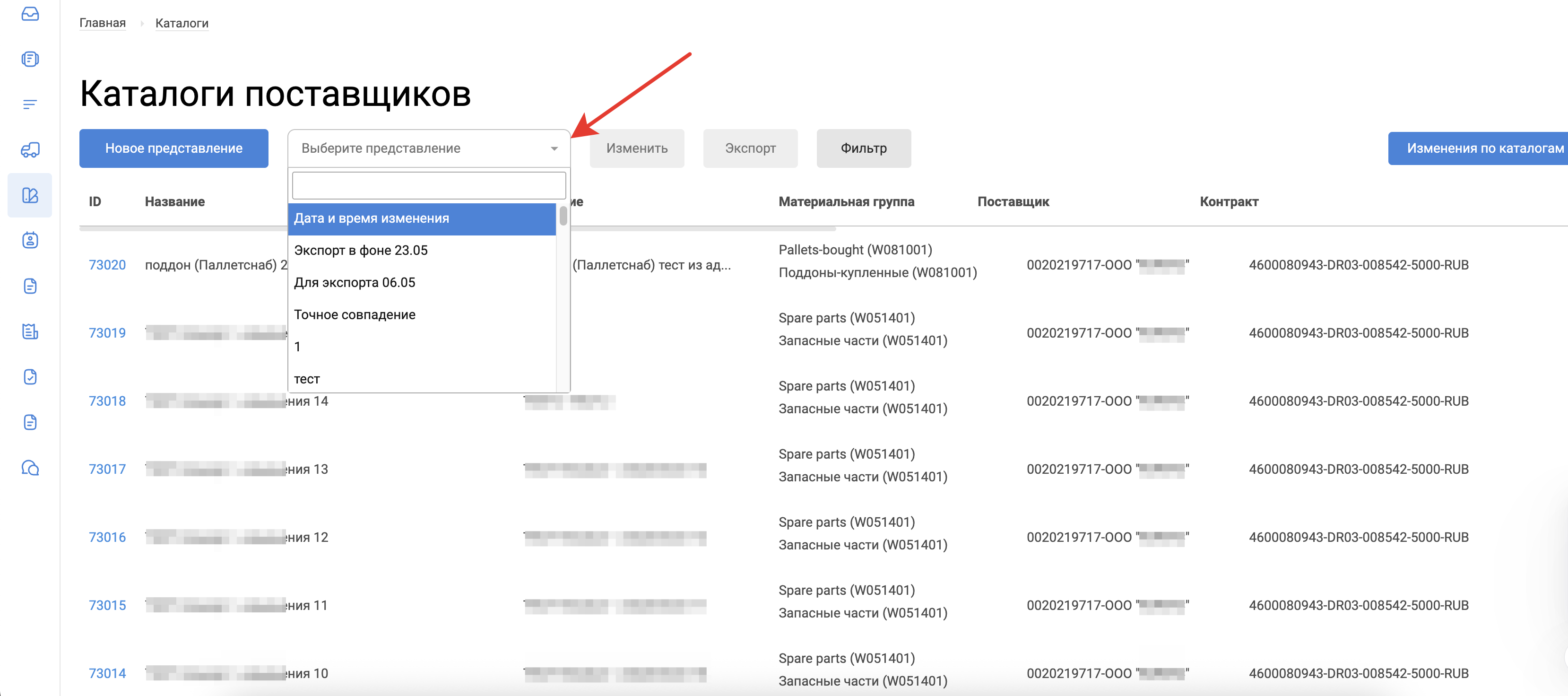 Для того, чтобы применить представление необходимо выбрать нужное представление в выпадающем списке.