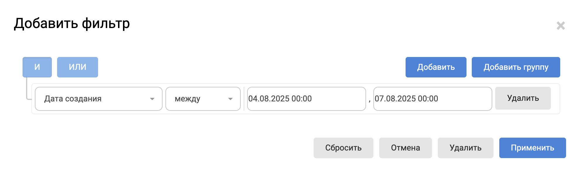 3. В фильтре настроить необходимые параметры выборки и нажать Применить.