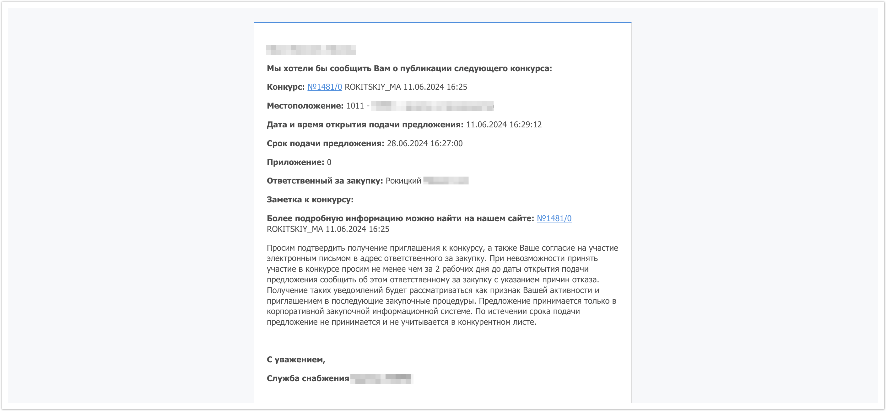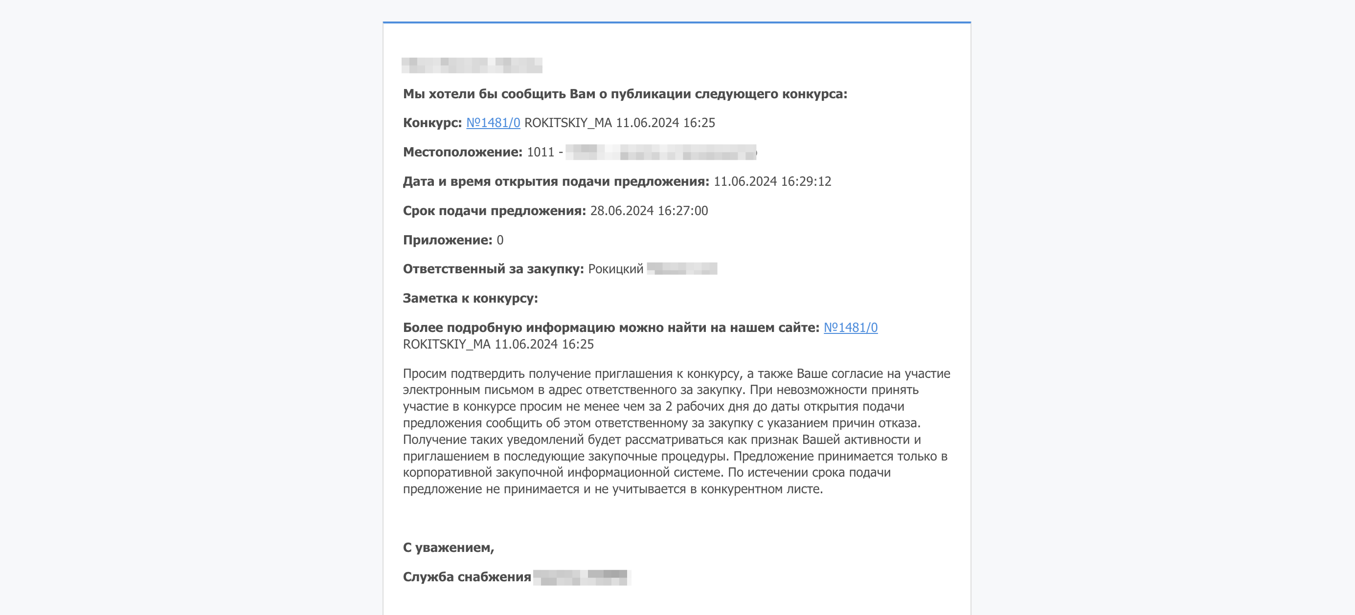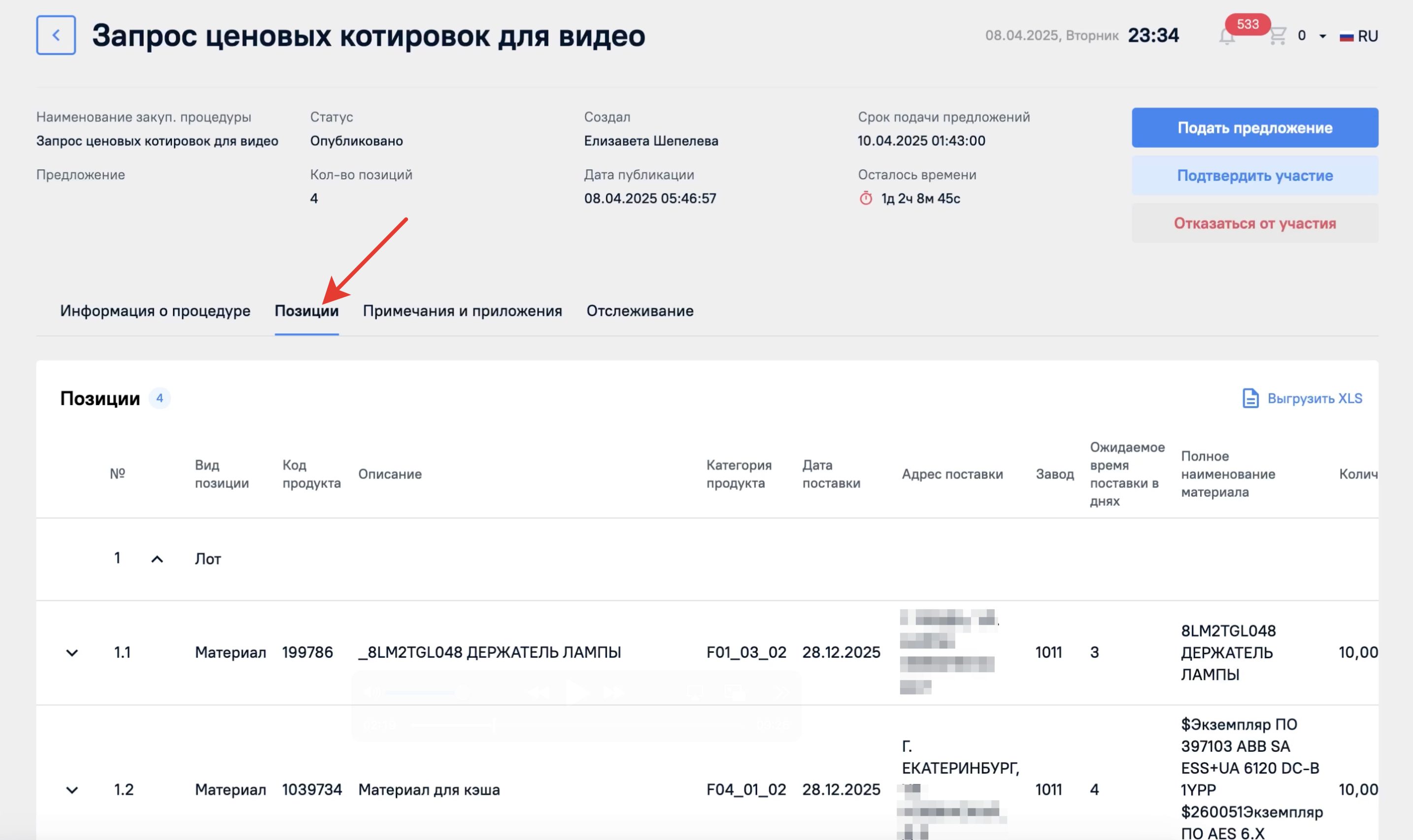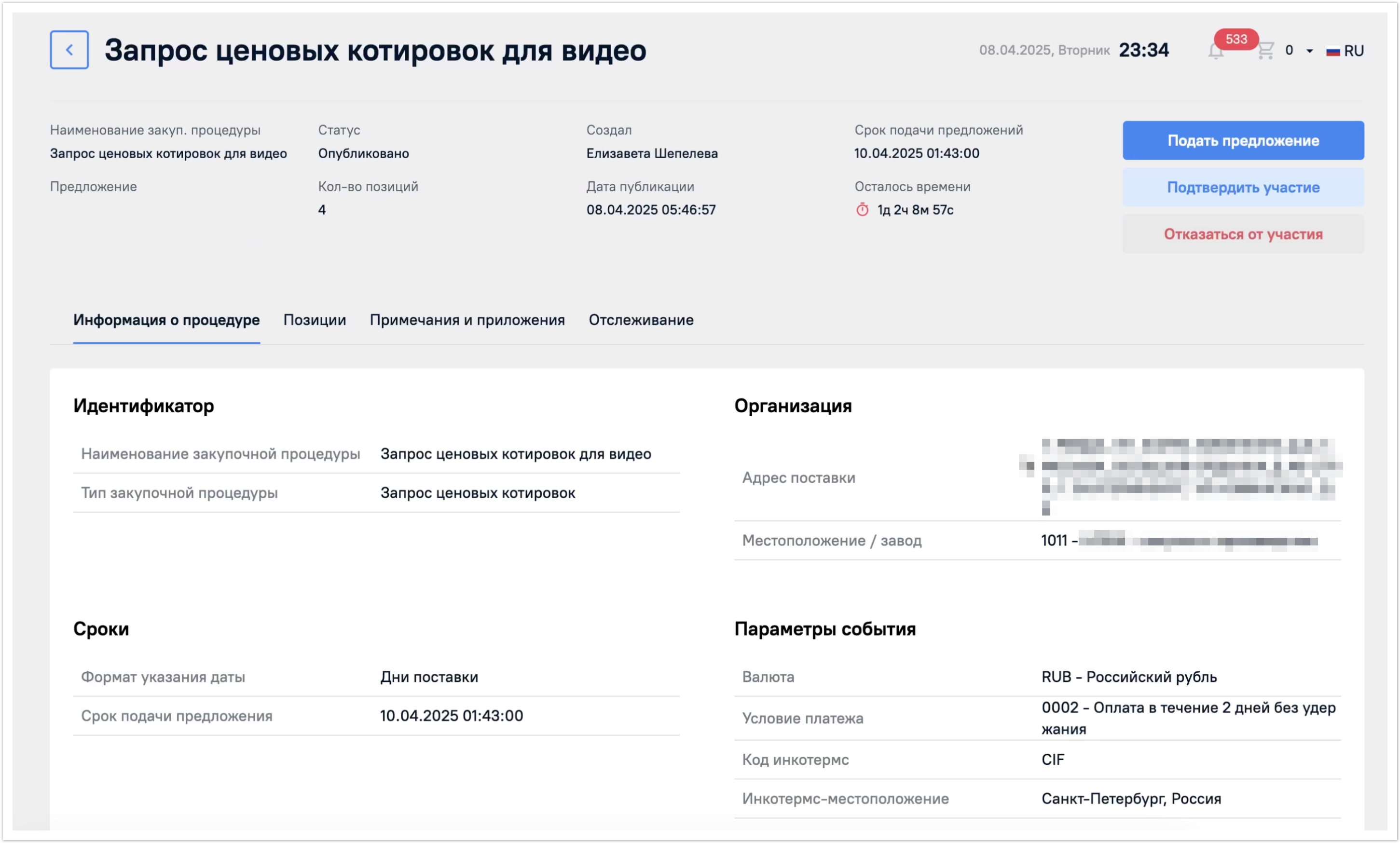 - Срок подачи предложения - дата и время до которой нужно сделать предложения.