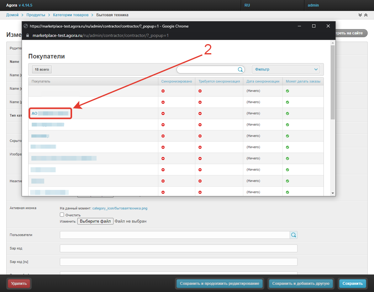 Чтобы ограничить права доступа для покупателей, нажмите на название категории.