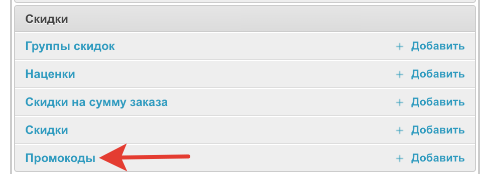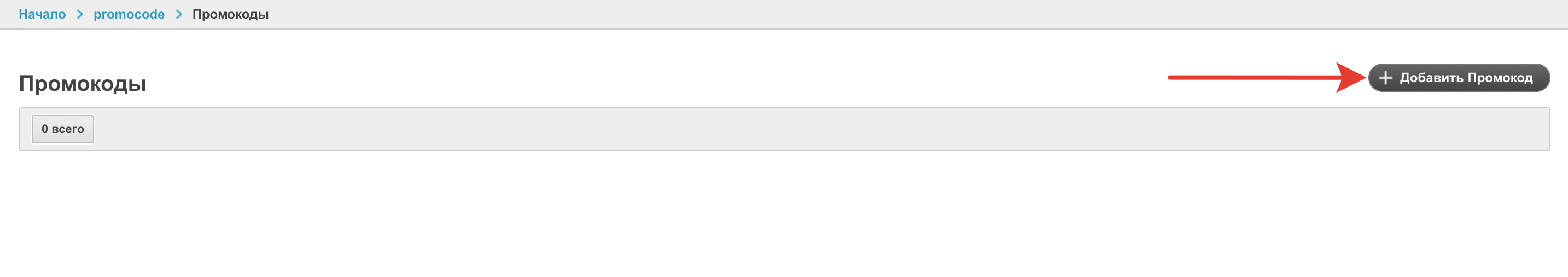 При переходе в раздел появится возможность завести промокод с помощью кнопки Добавить промокод: