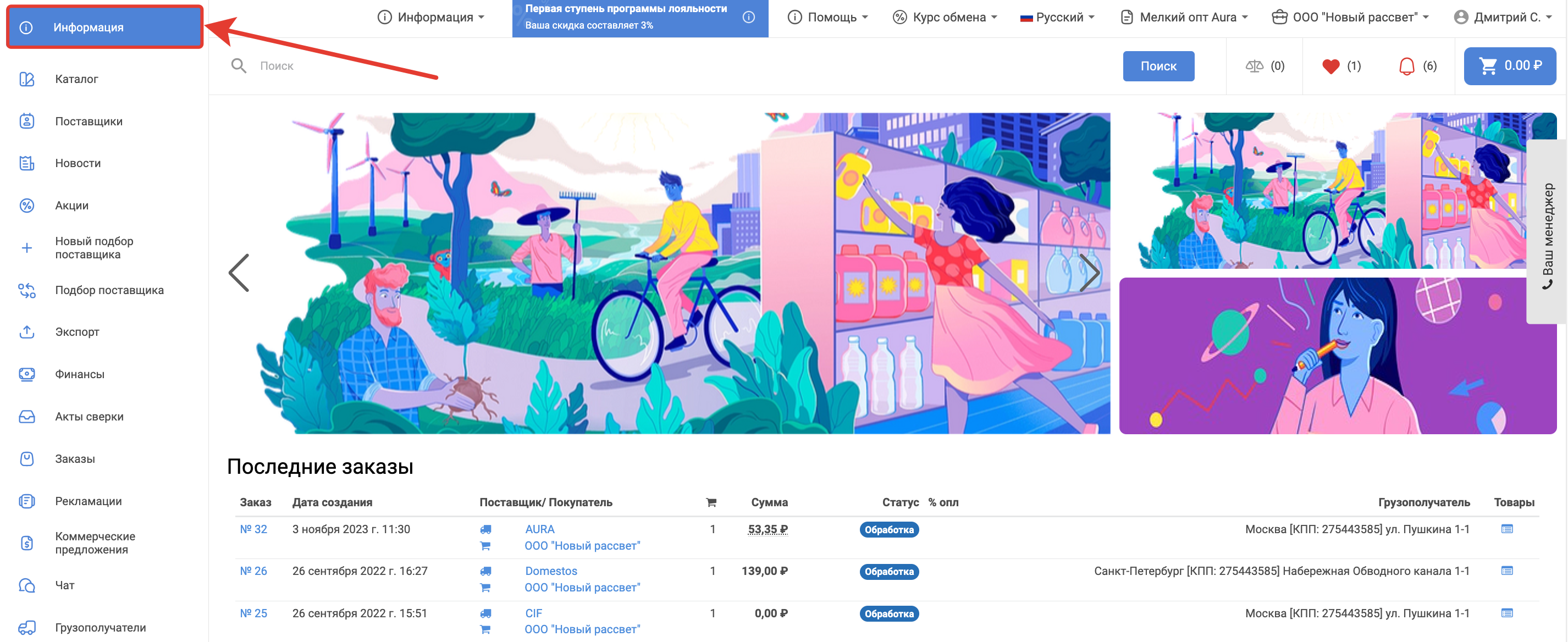 Для просмотра информационных страниц в личном кабинете нажмите на значок или кнопку Информация, которая может находиться в верхней/нижней части сайдбара или хедере сайта.