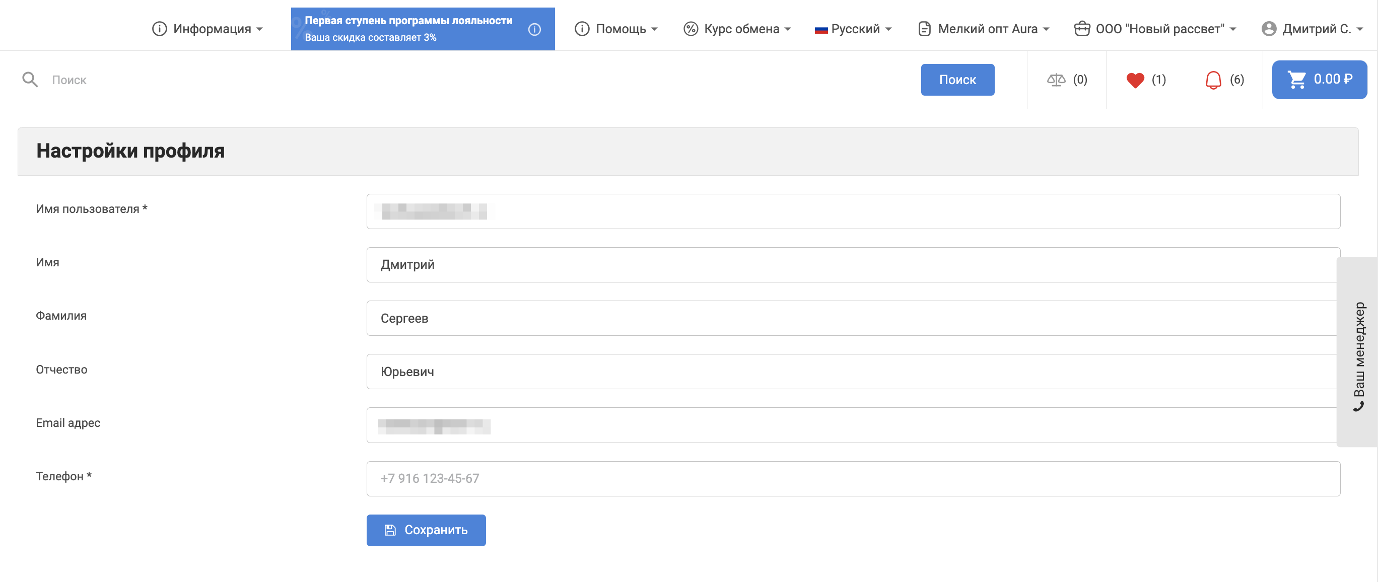 В настройках профиля можно внести или отредактировать личные данные, такие как: