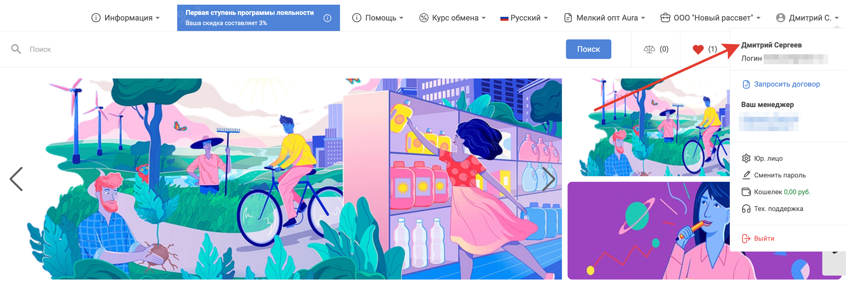 Для перехода к настройкам выберите соответствующий пункт в меню пользователя: