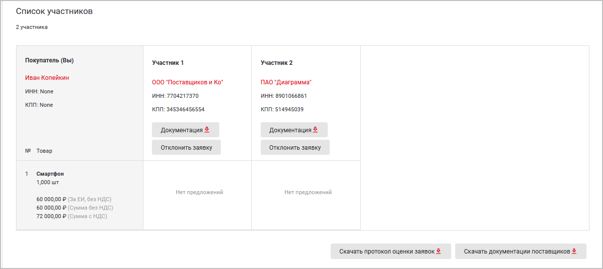 Можно также Скачать протокол оценки заявок, Скачать документации поставщиков (документы всех поставщиков).