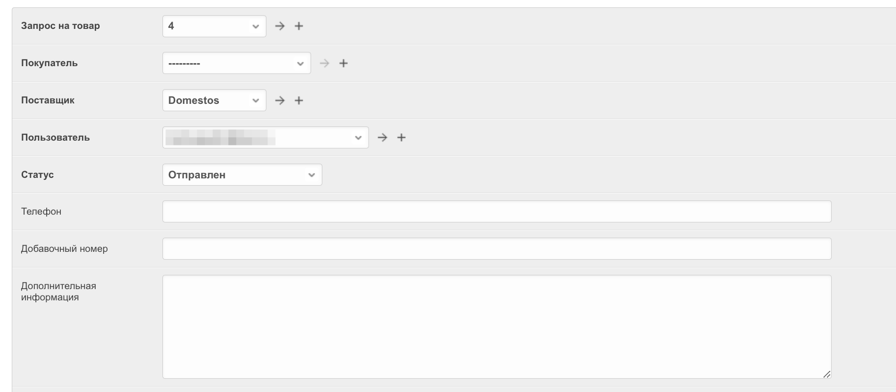 Запрос на товар - номер запроса, для которого поставщик подавал свою заявку (данный номер отображается в личном кабинете в разделе Заявки и в административной панели в разделе Запросы на товар).