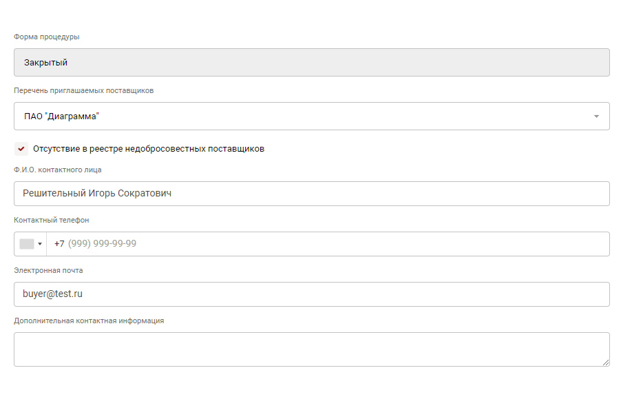 Дополнительная информация к закупочной процедуре