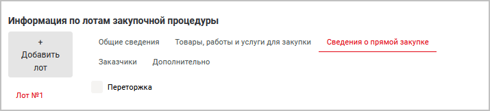 Вкладка Сведения о прямой закупке