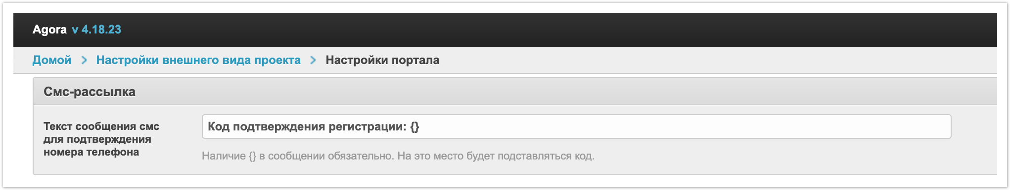 Текст сообщения смс для подтверждения номера телефона - в этом поле можно указать текст, который будет отправляться в сообщениях смс рассылки. Это поле будет актуально в случае, если на проекте подключено дополнительное подтверждение аккаунта по номеру телефона. Отправка сообщений происходит по умолчанию с помощью сервиса Smstraffic.