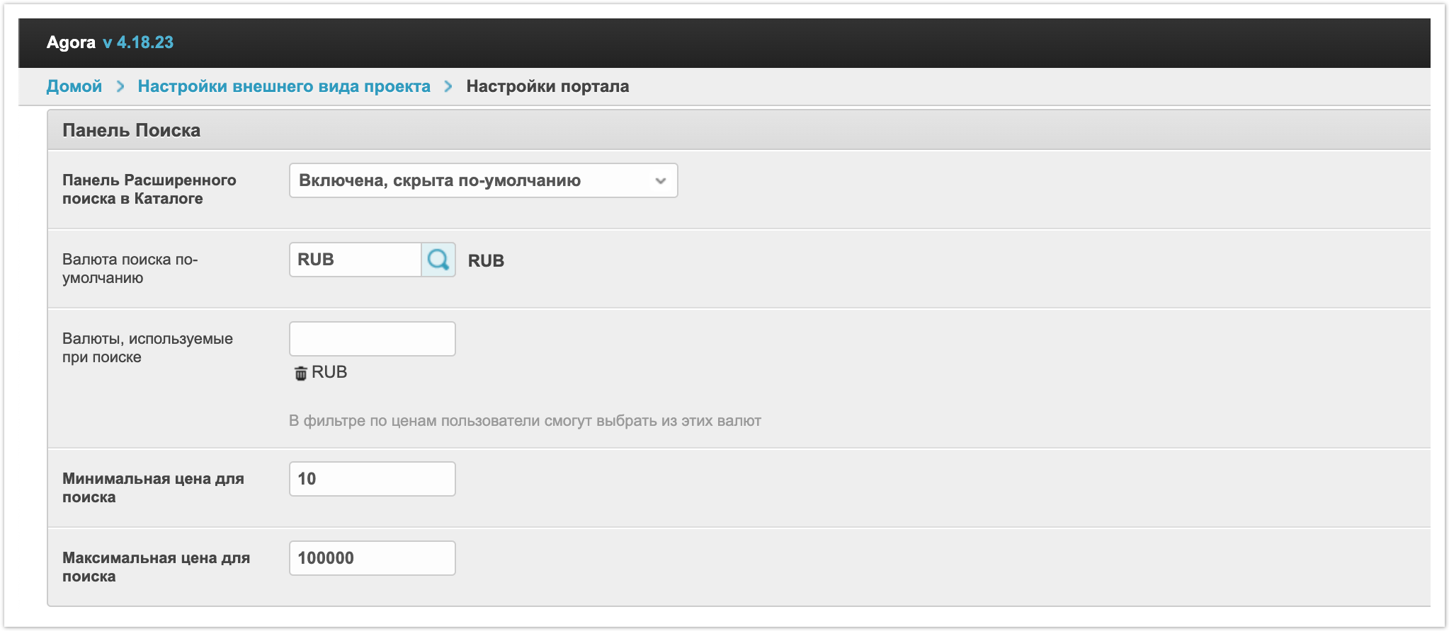 Валюта поиска по-умолчанию - в этом поле заполняется валюта, которая будет использоваться по-умолчанию при поиске по каталогу.
