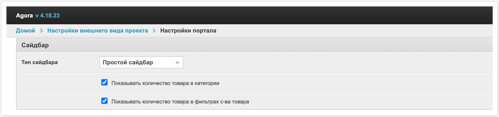 Тип сайдбара - в выпадающем списке можно выбрать из двух значений: Простой сайдбар или Расширенный сайдбар. Визуальное отображение незначительно отличается для этих вариантов.