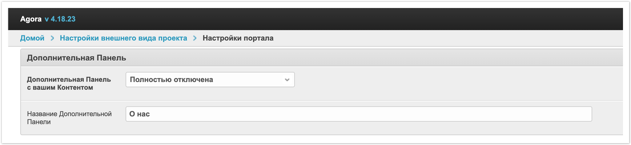 Название Дополнительной Панели - в этом поле указывается название панели с дополнительным контентом, которое будет выводится в личных кабинетах пользователей.