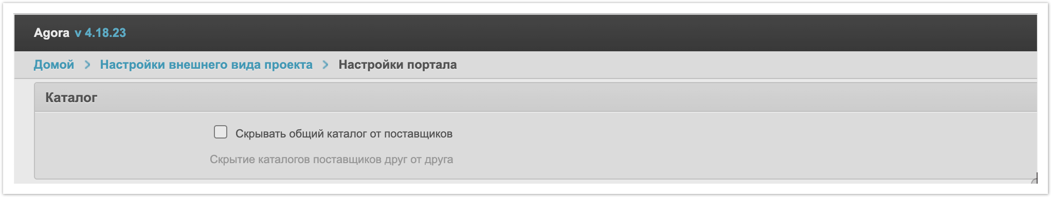 Скрывать общий каталог от поставщиков - настройка отвечает за скрытие каталогов поставщиков друг от друга, то есть они не смогут видеть товары и цены других поставщиков.
