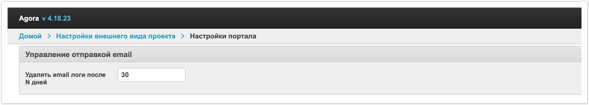 Удалять email логи после N дней - здесь указываются сроки хранение e-mail уведомлений. По истечению этого срока логи об отправке уведомлений будут удаляться.
