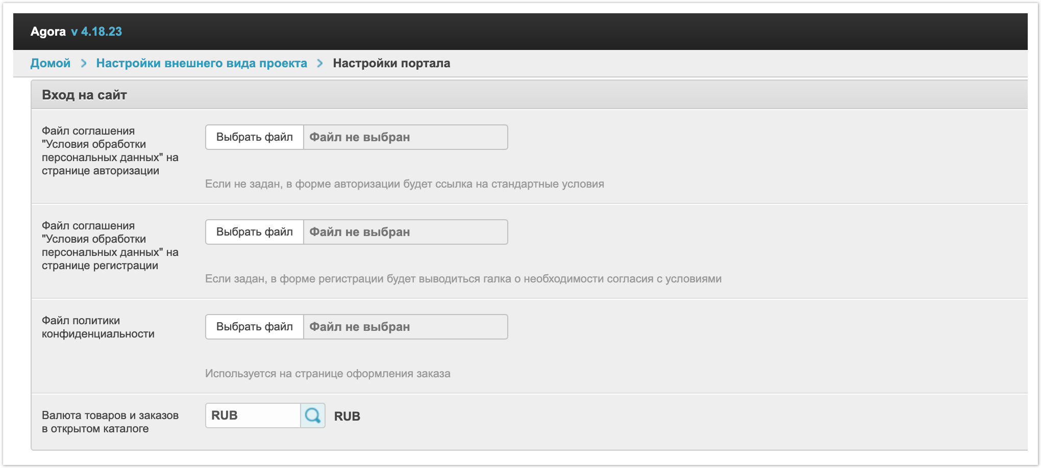 Если файлы не были загружены, то пользователям будут отображаться стандартные условия обработки персональных данных и стандартная политика конфиденциальности.