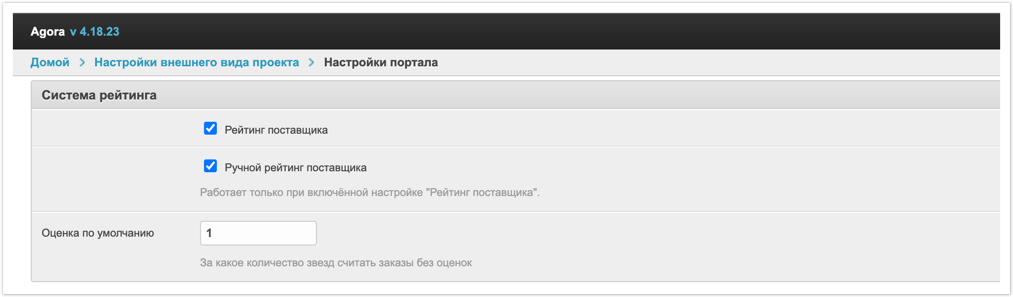Оценка по умолчанию - в этом поле указывается, какая оценка будет присвоена заказам, которые не были оценены пользователями.