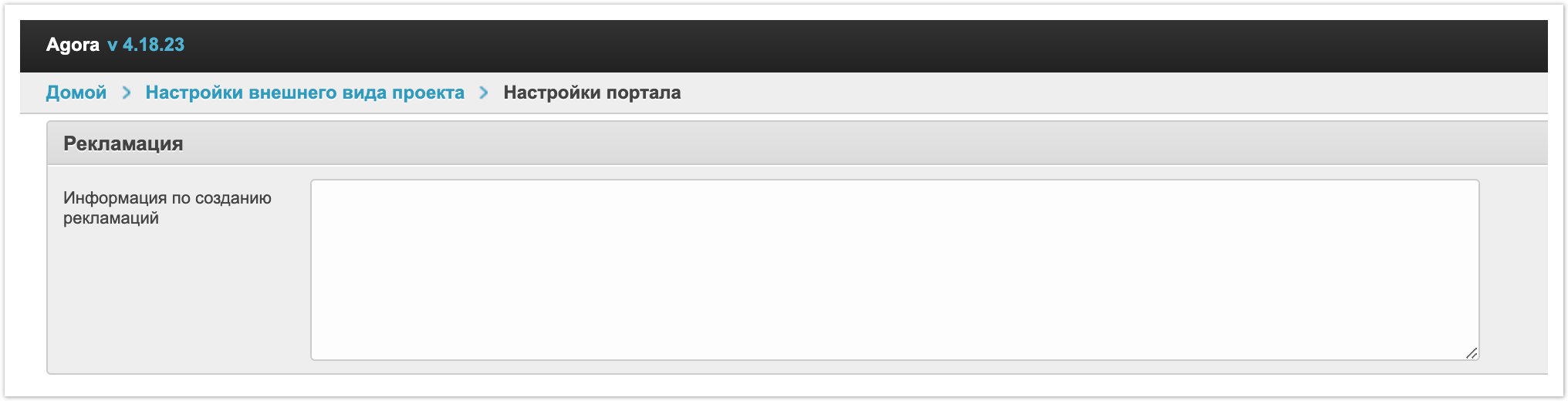 Информация по созданию рекламаций - в этом поле можно напечатать текст с инструкцией для пользователей. Например, можно указать, какие документы должны быть приложены или время рассмотрения рекламации. Эта информация будет отображаться при оформлении запросов на возврат товара. Текст должен содержать не более 1000 символов.
