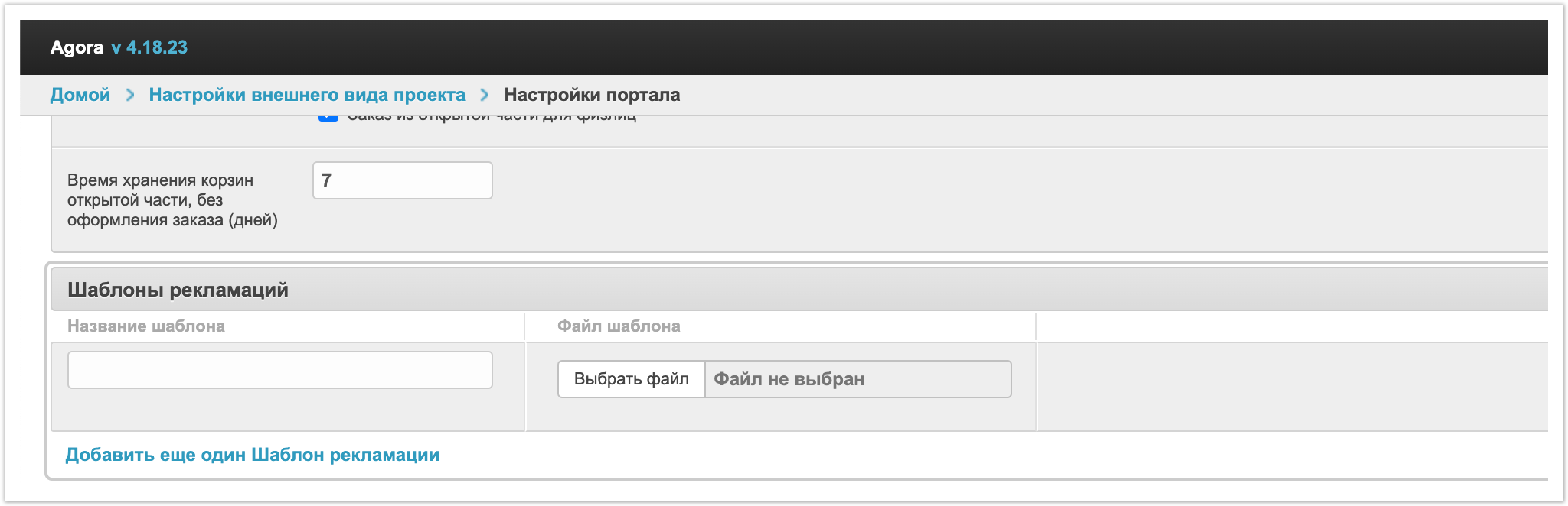 Шаблоны рекламаций - в этом поле можно загрузить файлы с примером оформления рекламаций. Шаблон будет отображаться при оформлении запросов на возврат товара. Шаблонов может быть загружено несколько, но мы рекомендуем использовать не более 5 файлов и каждый должен быть размером до 10 мб.