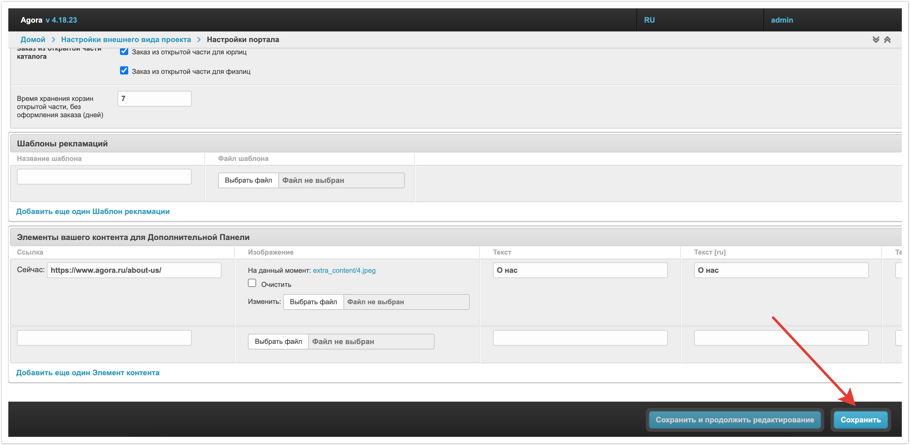 Для того чтобы сохранить все внесенные изменения необходимо нажать кнопку Сохранить в правом нижнем углу страницы.